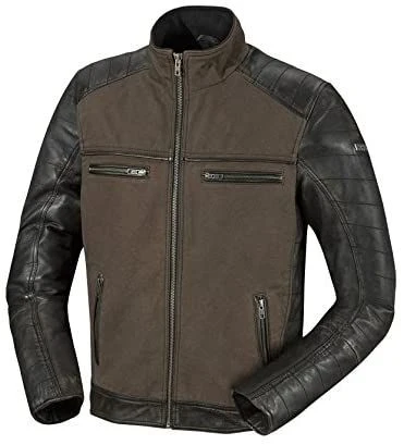 De IXS Jimmy is een stoere biker jas gemaakt van een combinatie tussen schapenleer en textiel. De mouwen zijn gemaakt van zacht schapenleer en het textiel heeft een vintage, olijfgroene gloed. Deze combinatie van zwart en olijfgroen maken de jas zeer geschikt voor de stoere biker.