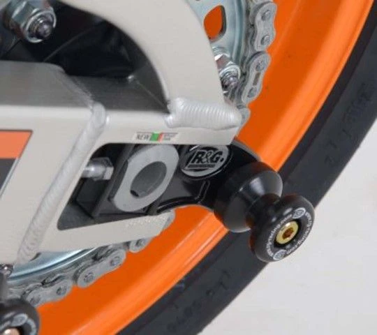 Wanneer er geen schroefdraad in de achterbrug is om een bobbin te monteren kan de R&G “Offset Cotton Reels” gebruikt worden. Zo kan er via de kettingspanner/achteras toch een bobbin op de motor gemonteerd worden en kan de motor dus met een paddockstand veilig en stevig gestald worden. Ook beschermen de bobbins de achterbrug bij een val.