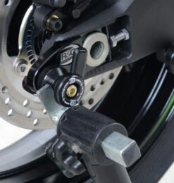 Wanneer er geen schroefdraad in de achterbrug is om een bobbin te monteren kan de R&G “Offset Cotton Reels” gebruikt worden. Zo kan er via de kettingspanner/achteras toch een bobbin op de motor gemonteerd worden en kan de motor dus met een paddockstand veilig en stevig gestald worden. Ook beschermen de bobbins de achterbrug bij een val.