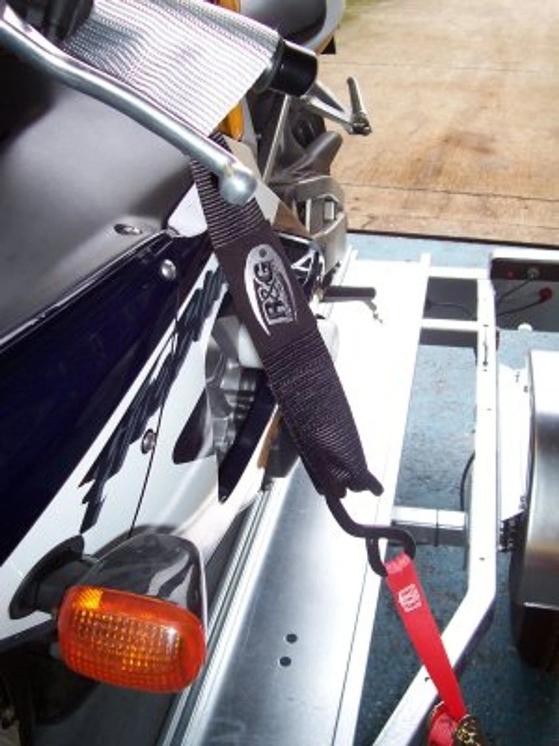 Met het revolutionaire bevestigingssysteem kunt u uw fiets op uw aanhanger vastmaken en de vorken samendrukken, zonder het bovenjuk of de kuippanelen te schrapen. De bovenste riem is voorzien van zachte vulling die over het bovenste juk loopt, evenals stuurgeleiders, zodat u de ratelriemen van de fiets kunt wegleiden. ** Onderdeel is exclusief ratelriemen ** R&G Racing-stuurtopriemen ST0001BL R&G Racing-stuurtopriemen, 25 mm-ratelriemen, RG, R&G Racing, fietsonderdelen, motorbenodigdheden