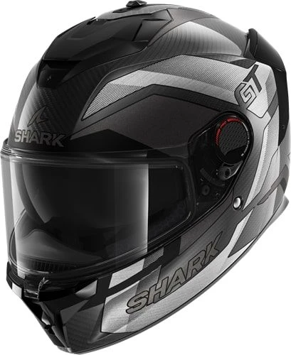 De Shark Spartan GT Pro Carbon Ritmo biedt sportieve looks en features zoals een dubbele D-ring sluiting. Gemaakt van glasvezel en dankzij het ‘Emergency Removal System’ van Shark zijn de wangkussens bij een ongeval gemakkelijk te verwijderen.
